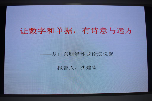 2019年10月19日下午,沈建宏先生应我院邀请,在燕山校区逸夫楼Y320做题为《让数字和单据,有诗意与远方—从山东财经沙龙论坛说起》的主题报告。讲座由MPAcc中心主任、bat365官方官网副院长朱德胜主持,bat365官方官网2018级、2019级会计专硕聆听了讲座。沈建宏是山东省青年作家协会理事,大众报业集团记者、编辑,也是山东大型读书活动主讲人以及山东第一届“明湖论道”财经沙龙活动策划人。