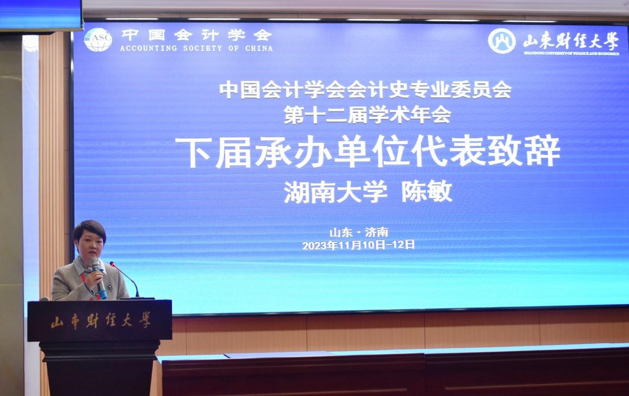 闭幕式上,湖南大学陈敏教授代表会计史专业委员会第十三届承办单位致辞。会计史专业委员会主任委员付磊教授在大会总结中表示,本次大会是一次丰富多彩的学术盛宴,大会极具创新性地邀请了改革的亲历者,既能呈现改革原貌,了解真正的前因后果,又加深了对中国会计发展的认识。bat365官方官网副院长吴大新主持闭幕式。