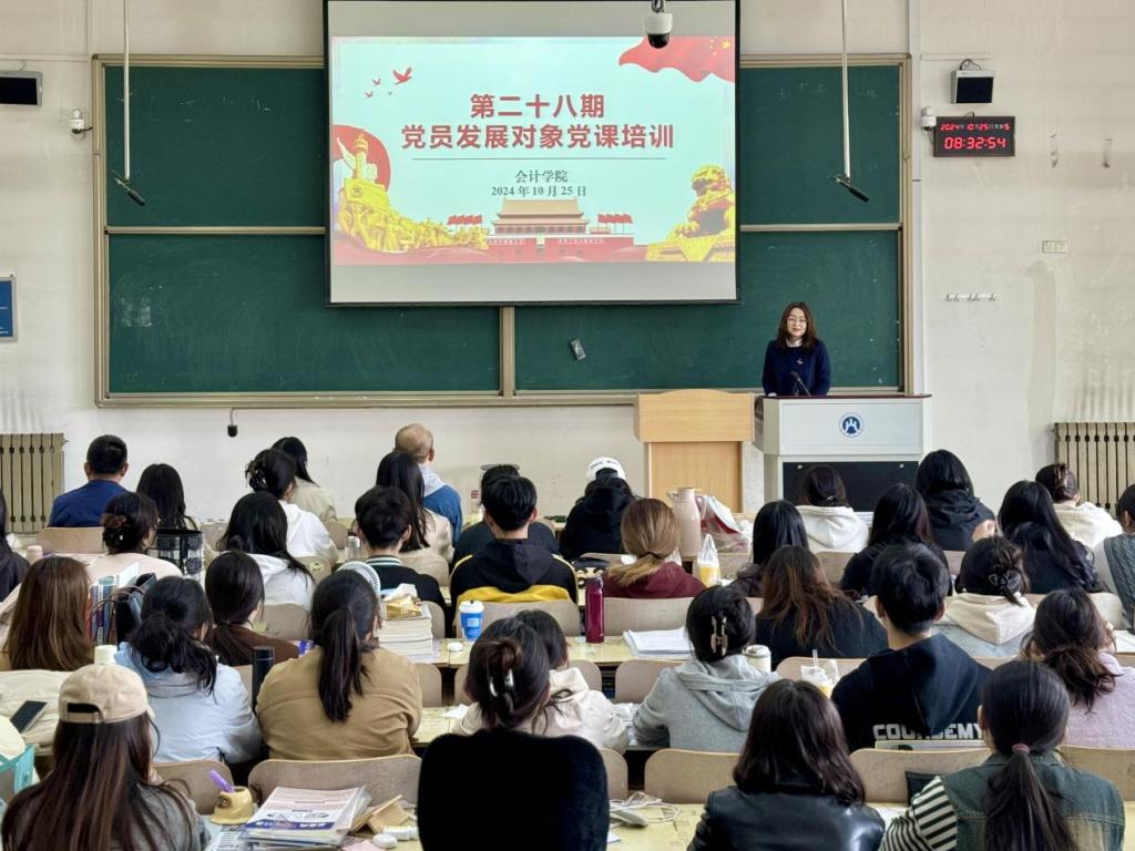 为深入学习贯彻习近平新时代中国特色社会主义思想和党的二十届三中全会精神,进一步提高党员发展质量,全面提高党员发展对象的思想政治素质,10月25日,bat365官方官网在燕山校区逸夫楼Y401教室举行第二十八期党员发展对象党课培训开班仪式。学院党委书记邵文涛、党委副书记钟毓卓、学生党支部、研究生党支部书记、辅导员老师及本批次党员发展对象参加。开班仪式由钟毓卓主持。