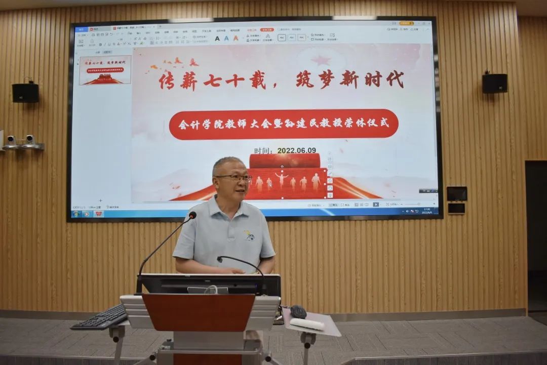 bat365官方官网教师大会暨孙建民教授荣休仪式庄重而又温暖,规范又不失情怀,有激励、有期待、有别离。bat365官方官网老前辈在风雨兼程的洗礼中,铸就了会院现在的发展。昨天,我们以你们为荣。明天,我们不忘初心,薪火传承。