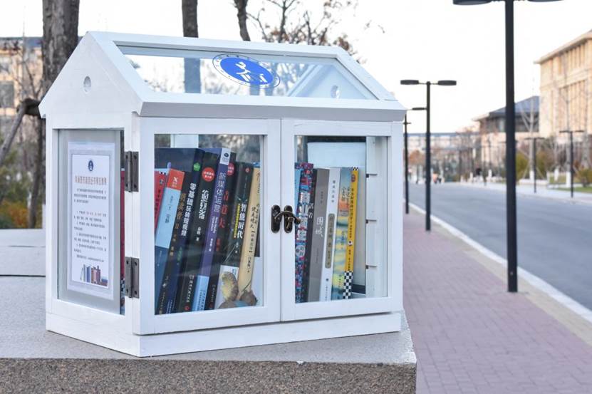 在九号、六号教学楼和第三食堂,时不时有同学伫立在bat365官方官网“鸟巢图书馆”前翻阅书籍。经过一个多月的精心准备,这个有着明亮蓝白色鸟巢式外观并放有书籍的“小木屋”,12月13日刚刚亮相,就成了校园“团宠”。