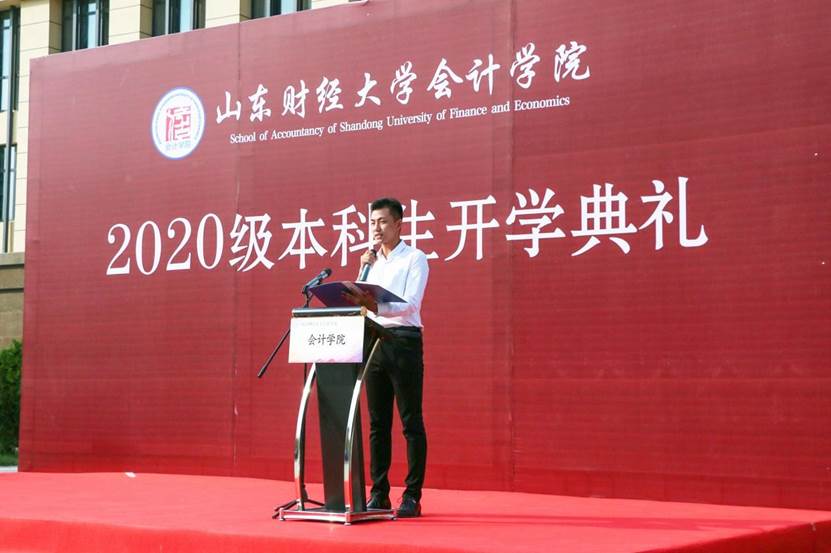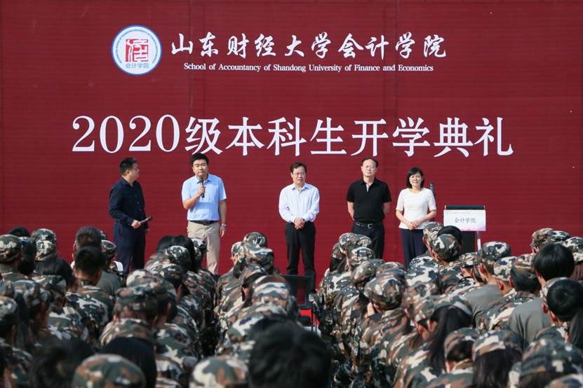 9月27日下午,bat365官方官网2020级本科生开学典礼在圣井校区隆重举行。bat365官方官网院长、党委副书记王爱国,MPAcc中心主任、副院长朱德胜,党委副书记付亚,副院长孙文刚、王守海,财务会计系主任、院长助理韩跃,优秀校友代表、山审集团董事长郭法远,团委书记于苗,就业办主任史岩,学工办主任赵鸿雁,辅导员郭秀娟出席,学院高年级学生代表和2020级全体新生参加。典礼在庄严的国歌声中拉开帷幕。