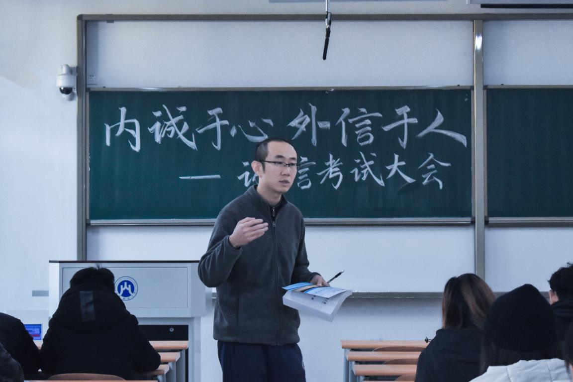 王文伟老师向在座同学讲解了与考试相关的各项要求,并通过政审实例深入浅出地对同学们进行了考试诚信教育。他指出,每次考试他都会要求把“内诚于心,外信于人”写在考场黑板上,以此将会院院训传达给每位同学,警示考生诚信考试,为自己、为这个学期交上一份完美的答卷。