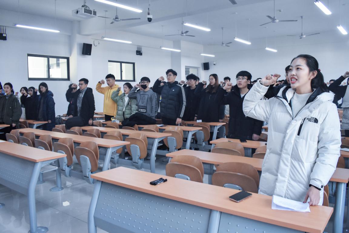 学生代表许洪瑄发言说,诚信守信是每个会院学子都应当遵守的准则,不能为了获取一个漂亮的成绩而选择作弊,在自己的品行上留下污点,让自己追悔莫及。现场全体学生代表进行了庄严宣誓。