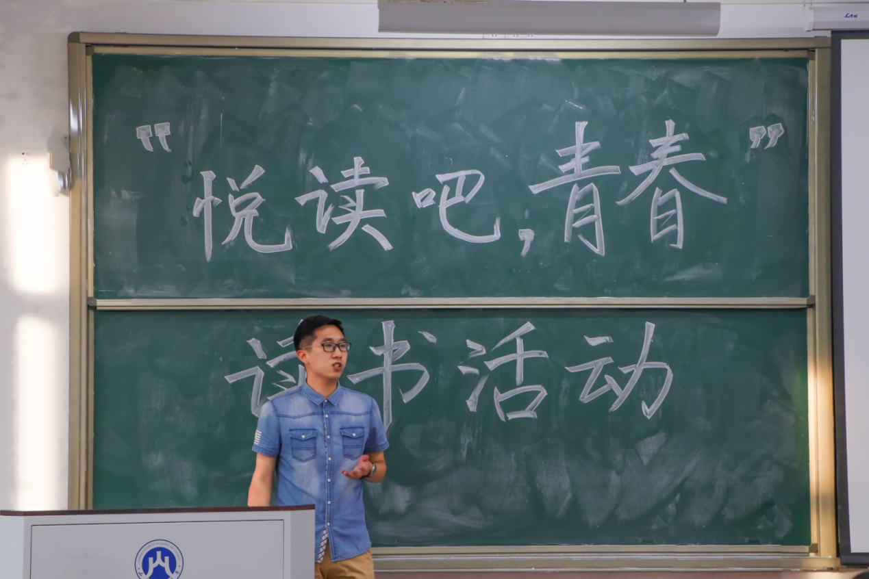 2019年5月29号晚,bat365官方官网学习部在6214教室举办了“悦读吧,青春”主题读书活动,到场的每一位同学都拿了自己喜欢阅读的书籍。资评1701班的黄睿轩同学和资评1702班的姜皓翔同学带着自己喜欢的书,给大家分享了阅读的经验。黄睿轩同学有针对性的向我们bat365官方官网的学生描述了自己对《货币原理》这本书的见解,条理清晰,简洁明快,寥寥几句就让大家改变了对这种学术性书籍的印象。姜皓翔同学用诙谐幽默的话语跟大家分享了自己对《教父》一书的感悟和见解,书中所含,令人深思。