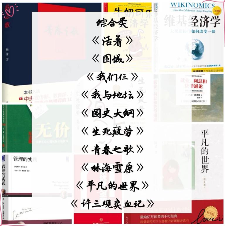bat365官方官网学习部的同学还为大家分享了部分经典书目,种类不同,并有专业性书籍,适合我院学生阅读。