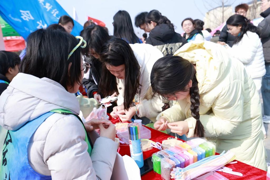 而互动体验区更是精彩异常,同学们积极参与,热情配合。“盲盒藏善意”活动中,同学们化身探索者,以一张纸片开启一场善意之旅。算盘挑战赛上,同学们的手指在算盘上轻盈跳跃,碰撞出智慧的火花。在手工制作区中,同学们被“心青年”的故事深深触动。“爱心绒花”等一系列作品让同学们在参与中感受温情,在奉献中茁壮成长。
