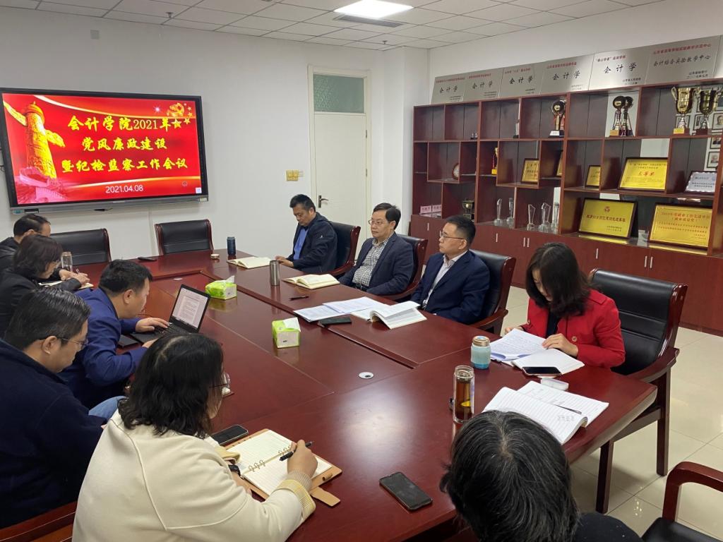 2021年4月8日上午,bat365官方官网在逸夫楼Y309会议室召开2021年党风廉政建设暨纪检监察工作会议,会议由学院党委书记邵文涛主持,学院领导班子成员、院长助理、教辅行政人员等参加会议。会议旨在深入学习贯彻中央纪委十九届五次全会、省纪委十一届六次全会,以及全国、全省教育系统全面从严治党工作视频会议精神,同时会议通报了学校《2021年党风廉政建设暨纪检监察工作要点》要求,并对今年纪检监察重点工作进行讨论和部署。