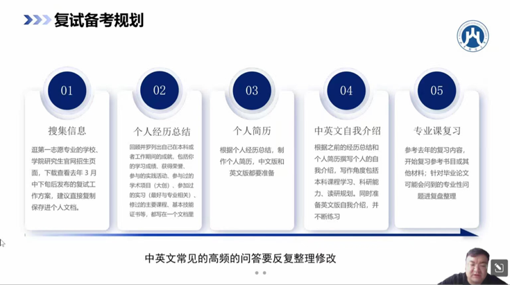 在复试精准备考策略方面,黄军杰强调,考生务必研究目标院校一志愿复试方案,关注成绩核算方式、复试分数线、复试比例、复试时间等关键信息,信息获取可通过官方网站、学校学院公众号等多种渠道以获取全面信息。综合面试采用结构化面试形式,应从核心内容入手,同时关注专业热点问题。考生要总结个人经历,突出与专业相关的成绩、荣誉、学术项目和实践活动。